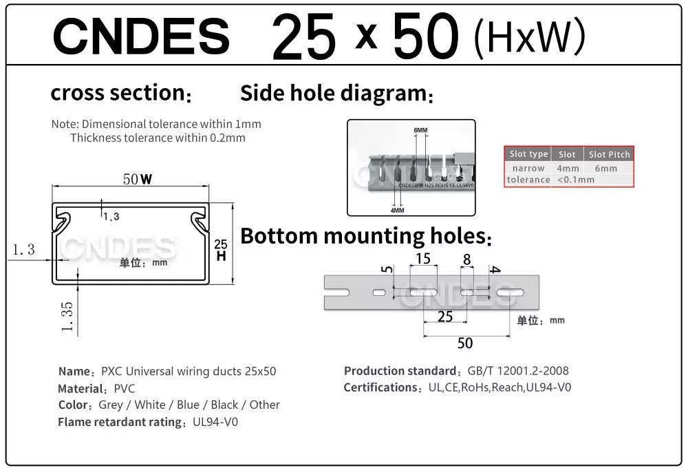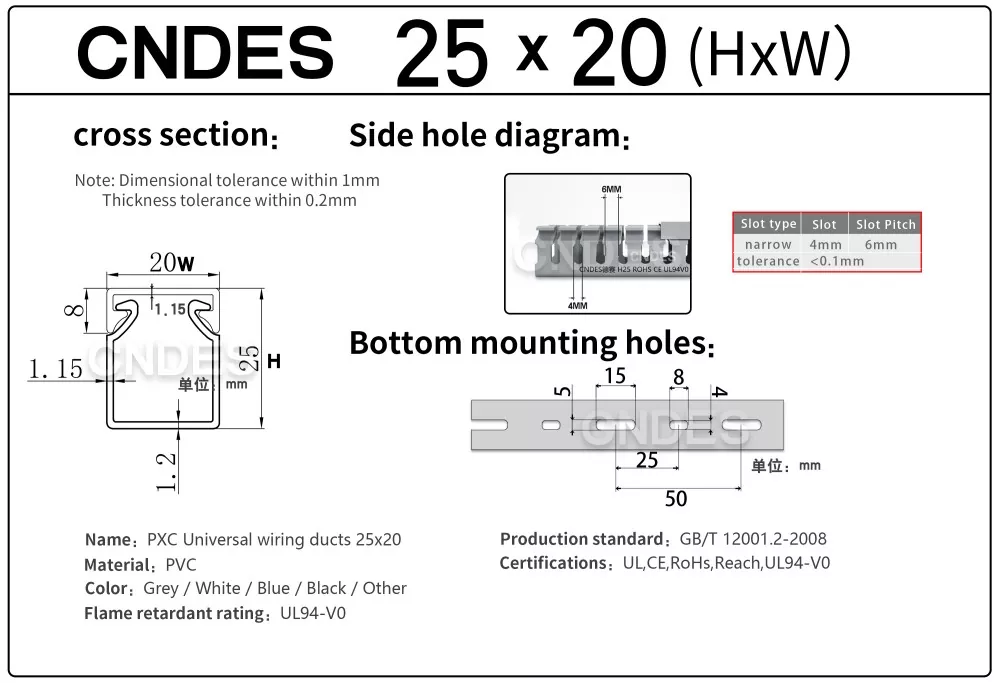 हाम्रो स्वतन्त्र रूपमा विकसित उच्च परिशुद्धता स्ट्याम्पिङ उपकरण मार्फत, एक अद्वितीय विभाजित स्वचालित काटन प्रक्रिया संग संयुक्त, CNDES ले लचिलो रूपमा धेरै विशिष्टताहरूमा उत्पादनहरू उत्पादन गर्न सक्छ, उच्च प्रदर्शन 25mm उचाइ PVC स्लटेड कन्ट्रोल प्यानल डक्टहरू, नियन्त्रण क्याबिनेटहरू र विद्युतीय प्रणालीहरूमा ग्राहकहरूको विविध आवश्यकताहरू पूरा गर्न।