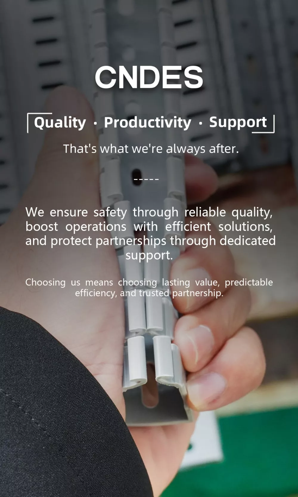 यदि तपाईं स्थिर आपूर्ति, भरपर्दो गुणस्तर र परिपक्व प्रविधि प्रदान गर्दै दीर्घकालीन साझेदारीका लागि भरपर्दो PVC केबल ट्रे निर्माता खोज्दै हुनुहुन्छ भने CNDES तपाईंको आदर्श विकल्प हो।