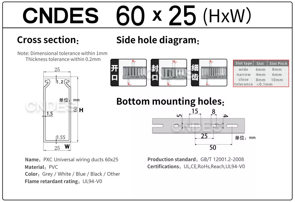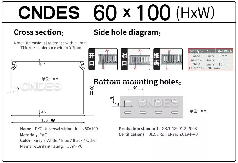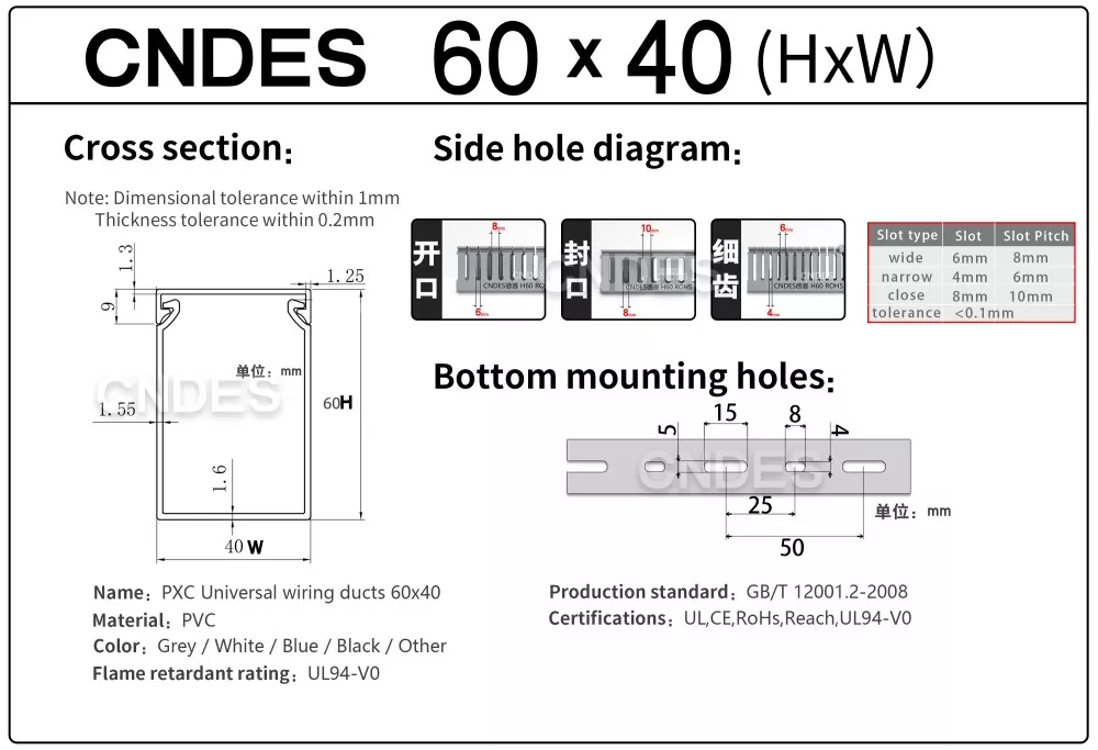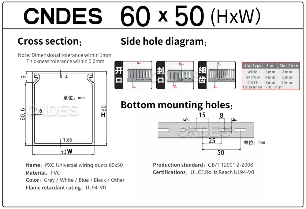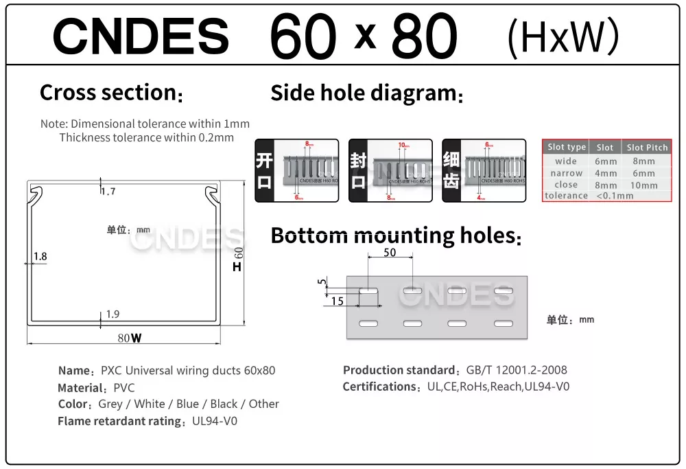CNDES मा, हामी तार नलिकाहरूको लागि व्यापक अनुकूलन प्रदान गर्दछौं। हाम्रा सेवाहरू विशेष कार्यात्मक सुविधाहरू (एन्टि-स्टेटिक, यूभी-प्रतिरोधी, सजिलो-ब्रेक) र पूर्ण आयामी समायोजनहरू (लम्बाइ, उचाइ, चौडाइ, प्वाल स्थिति/प्रोफाइल/पिच) देखि सौन्दर्य ब्रान्डिङ विकल्पहरू (अनुकूलन रङ, लोगो, पाठ मुद्रण) सम्मका हुन्छन्। हामी पनि टाँस्ने समर्थन प्रदान गर्दछौं।