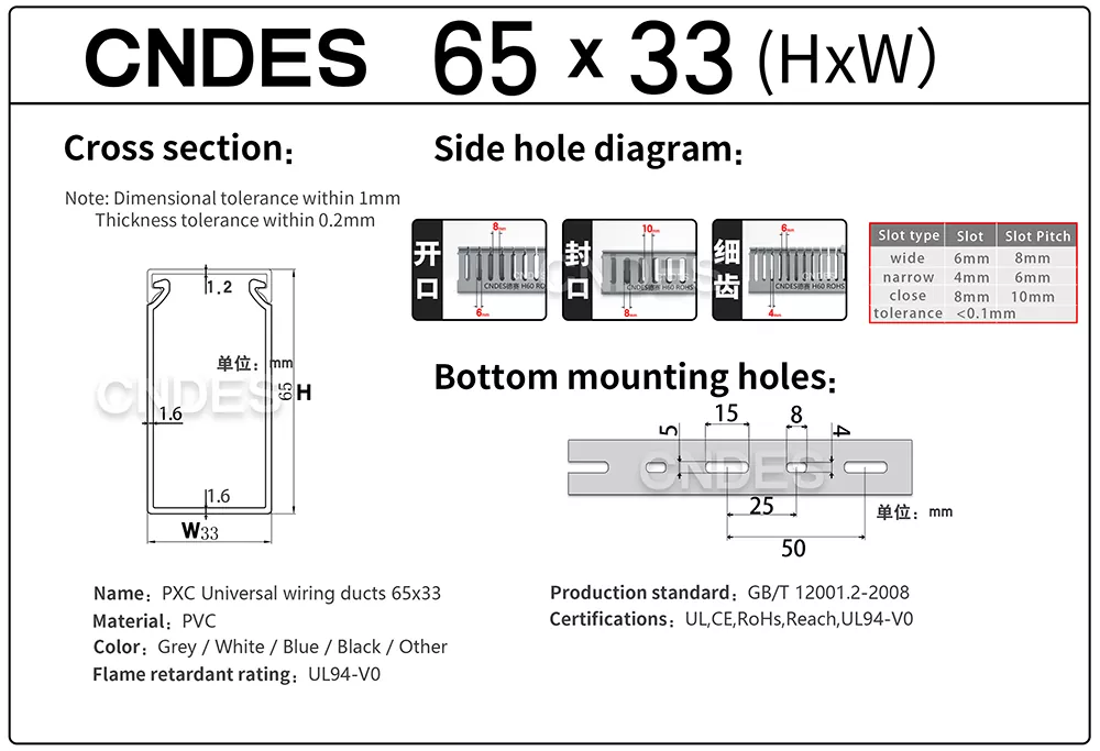 CNDES मा, हामीले गुणस्तर 65×33 केबल राउटिङ च्यानल विशेष गरी परियोजनाहरूका लागि डिजाइन गरेका छौं जहाँ ठाउँ सीमित छ तर केबल संगठन अझै पनि महत्त्वपूर्ण छ। यो कम्प्याक्ट राउटिङ च्यानलले स्थापनाकर्ताहरूलाई तारहरू सफा, सुरक्षित र विद्युतीय प्यानलहरू, नियन्त्रण बाकसहरू, र कम्प्याक्ट एन्क्लोजरहरू भित्र व्यवस्थापन गर्न सजिलो राख्न मद्दत गर्दछ।