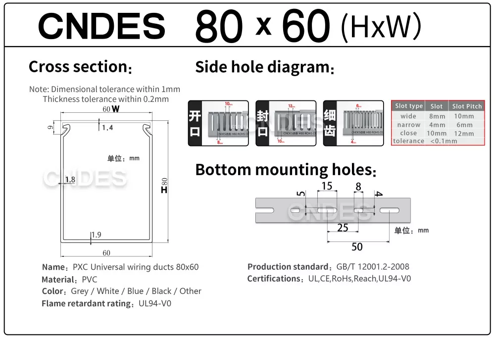 हाम्रो wiring ducts उत्पादनले UL, CE, ROHS, REACH, र UL94V0 प्रमाणपत्रहरू पारित गरेको छ, यसको गुणस्तर सुनिश्चित गर्दै! विश्वासको साथ प्रयोग गर्नुहोस्, मनको शान्ति संग खरिद गर्नुहोस्।