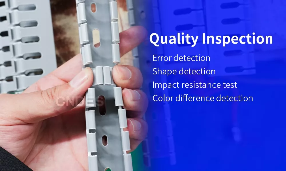राम्रो उत्पादनहरू प्रदान गर्न उच्च-मानक गुणस्तर निरीक्षण आवश्यक छ। CNDES मा, गुणस्तरको हाम्रो खोजी अनन्त छ। हामी हाम्रा ग्राहकहरूलाई भरपर्दो उत्पादनहरू प्रदान गर्न कुनै कसर बाँकी राख्दैनौं। हामीसँग हाम्रा उत्पादनहरूको अनलाइन निरीक्षण सञ्चालन गर्न चारवटा गुणस्तर निरीक्षकहरू छन्। यसले हाम्रो गुणस्तर ८० हाइट स्लटेड PVC स्वचालन केबल डक्टहरू आकारमा वर्गाकार, चिल्लो सतहहरू, स्वीकार्य कठोरता मापदण्डहरू पूरा गर्ने,